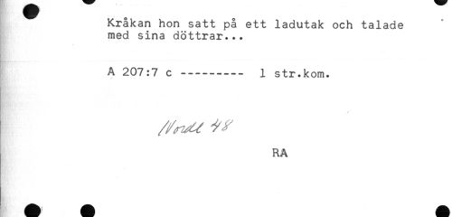 //// Kråkan hon satt på ett ladutak och talade //// med sina döttrar... //// t //// A 207:7 c---- 1 str.kom. //// RA ////