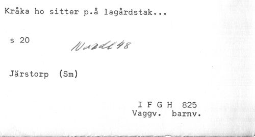 //// Kraka ho sitter p.å lagårdstak... //// Järstorp (Sm) //// I F G H 825 //// Vaggv. barnv. ////