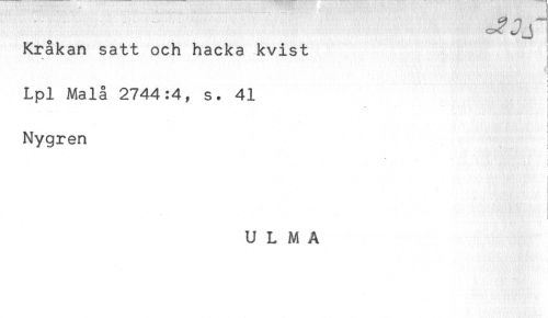//// Kråkan satt och hacka kvist //// t //// st //// f //// Lpl Malå 2744:4, s. 41 //// Nygren //// \ . , ) y' "*' ' i //// i //// . ) //// ULMA ////