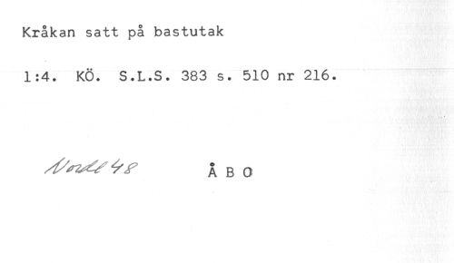 //// Kråkan satt på bastutak //// 1:4. KÖ. S.L.S. 383 s. 510 nr 216. //// ^^^ ÅBO ////