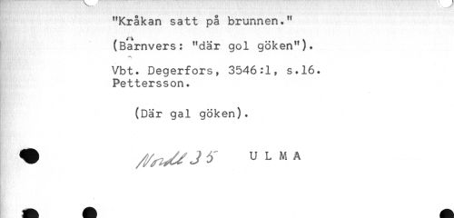 //// "Kråkan satt på brunnen." //// (Barnvers: "där gol göken"). //// Vbt. Degerfors, 3546:1, s.16. //// Pettersson. //// (Där gal göken). //// <* ULMA ////