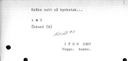 //// Kråka satt på kyrketak... //// - //// s w 2 //// Öckerö (B) //// I F G H 2387 //// " Vaggv. barnv. ////