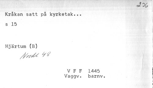 //// Kråkan satt på kyrketak... //// s 15 //// Hjärtum (B) //// ^^ ! //// V F F 1445 j //// Vaggv. barnv. ; //// & ////