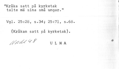 //// "Kråka satt på kyrketak //// talte mä sina små ungar." //// ' ' .'2, ',.- i //// . //// * * //// Vgl. 25:28, s.34; 25:71, s.68. //// ) //// (Kråkan satt på kyrketak). //// ULMA ////