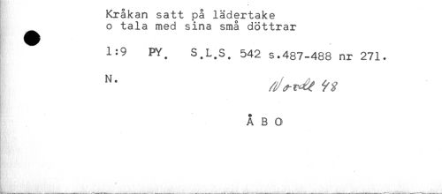 //// Krakan satt pa ladertake //// ^ o tala med sina små döttrar //// 1:9 PY. S.L.S. 542 s.487-488 nr 271. //// . //// . //// ÅBO' //// - //// - //// - //// ' . ' - ////