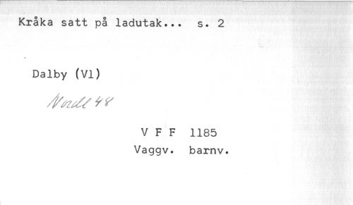 //// Kråka satt på ladutak... s. 2 //// Dalby (VI) //// V F F 1185 //// Vaggv. barnv. ////