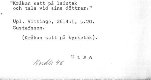//// och tala vid sina döttrar." //// * //// + //// Upl. Vittinge, 2614:1, s.20. //// Gustafsson. //// (Kråkan satt på kyrketak). //// , ULMA ////