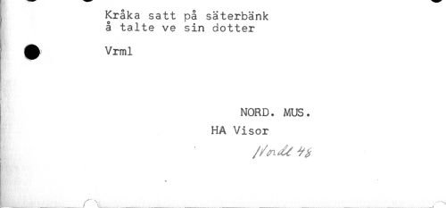 //// I Kraka satt pa säterbänk //// ' å talte ve sin dotter //// NORD. MUS. //// HA Visor ////
