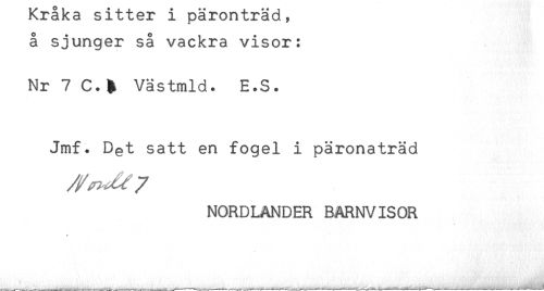 //// å sjunger så vackra visor: //// Nr 7 C.$ Västmld. E.S. //// Jmf. Det satt en fogel i päronaträd //// NORDLANDER BARNVISOR ////