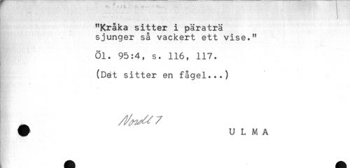 //// ) //// "Kråka sitter i päraträ //// sjunger så vackert ett vise." //// Öl. 95:4, s. 116, 117. //// (Det sitter en fågel...) //// * //// # ULMA //// t - ////