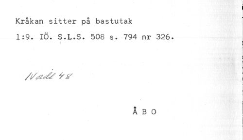 //// Kråkan sitter på bastutak //// 1:9. IÖ. S.L.S. 508 s. 794 nr 326. //// i //// r //// - ////
