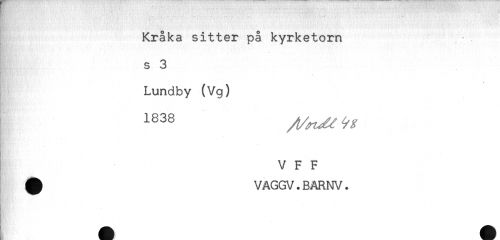 //// - . - ... - . — . - . . * //// Kråka sitter på kyrketom //// s 3 //// Lundby (Vg) //// V F F //// ^ VAGGV.BARNV. //// - //// B H H n ////