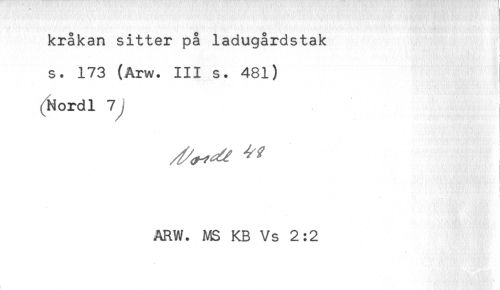 //// kråkan sitter på ladugårdstak //// s. 173 (Arw. III s. 481) //// (Nordl 7; //// -''.<!' i //// ARW. MS KB Vs 2:2 ////
