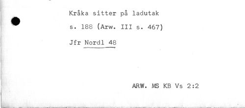//// Kråka sitter på ladutak //// ^ s. 188 (Arw. III s. 467) //// Jfr Nordl 48 //// g}< //// t //// ) //// ARW. MS KB Vs 2:2 ////