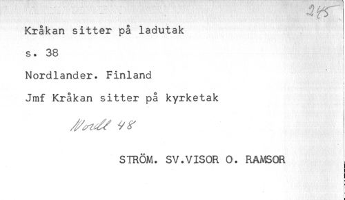 //// Kråkan sitter på ladutak //// < //// s. 38 //// Nordlander. Finland //// Jmf Kråkan sitter på kyrketak //// STRÖM. SV.VISOR O. RAMSOR ////