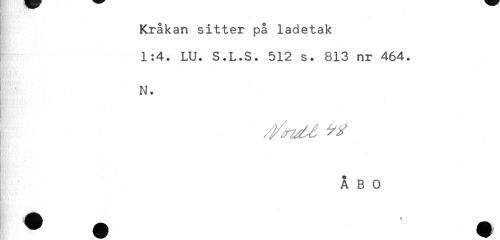 //// Kråkan sitter på ladetak //// 1:4. LU. S.L.S. 512 s. 813 nr 464. //// N. //// ÅBO ////