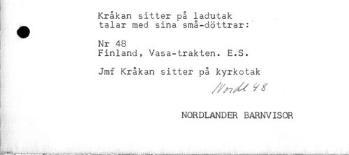 //// Kråkan sitter på ladutak //// ^^ talar med sina små-döttrar: //// Nr 48 //// Finland, Vasa-trakten. E.S. //// Jmf Kråkan sitter på kyrkotak //// NORDLANDER BARNVISOR ////