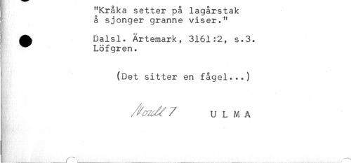 //// ? "^raxa setter pa lagarstak //// I å sjonger granne viser." //// ; ^ Dalsl. Ärtemark, 3161:2, $.3. //// Löfgren. //// (Det sitter en fågel...) //// - //// i ULMA ////