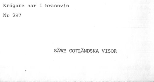 //// urogare nar i orannvm //// Nr 287 //// ^ //// SÄWE GOTLÄNDSKA VISOR ////