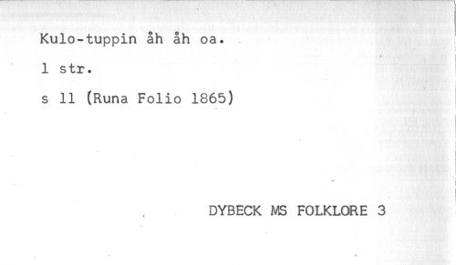 //// Kulo-tuppin åh åh oa. //// : //// ' //// i //// 1 str. //// i //// s 11 (Runa Folio 1865) //// i //// . //// t //// ! //// ) //// * i //// i //// DYBECK MS FOLKLORE 3 ////