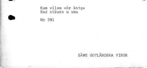 //// t Kum vilem vör äntga //// Bad stäure u sma //// ^ Nr 391 //// i //// i //// . //// I SÄWE GOTLÄNDSKA VISOR ////
