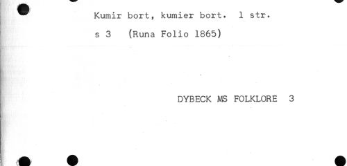 //// ^ Kumir bort, kumier bort. 1 str. //// s 3 (Runa Folio 1865) //// DYBECK MS FOLKLORE 3 ////