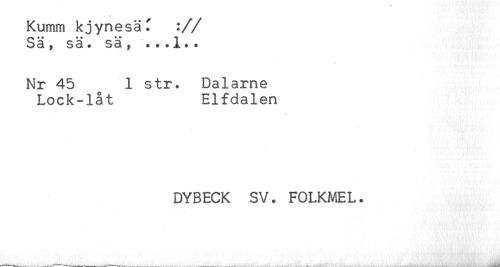 //// Kumm kjynesä^ :// //// S? M % S& * S 3 y * + * ^ * * //// Nr 45 1 str. Dalarne //// Lock-låt Elfdalen //// DYBECK SV. FOLKMEL. ////