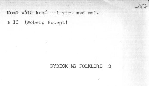 //// Kumä vålä komf 1 str. med mel. ! //// s 13 (Moberg Except) //// - //// DYBECK MS FOLKLORE 3 ////