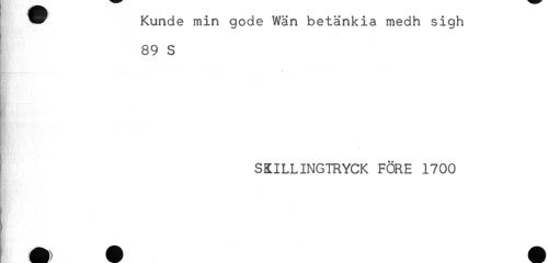 //// ^^ Kunde min gode Wän betänkia medh sigh //// 89 S //// SULLINGTRYCK FÖRE 1700 ////