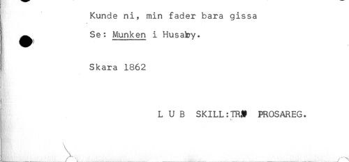 //// i Kunde ni, min fader bara gissa //// * //// ^^ Se: Munken i Husaby. //// j Skara 1862 //// i //// C' //// L U B SKILL:*m^ PROSAREG. //// [ \.......___, ////