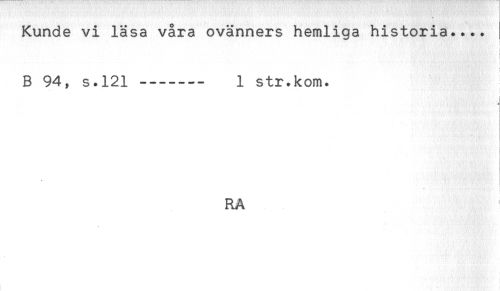 //// Kunde vi läsa våra ovänners hemliga historia.... //// r //// < //// ! //// B 94, s.121------- 1 str.kom. //// .-< . < i',.-.-*.. . i:' 4'wv-'.'*'''' '* //// RA ////