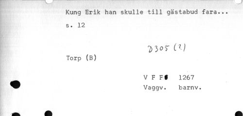 //// Kung Erik han skulle till gästabud fara... //// s. 12 //// Torp (B) //// V F F* 1267 //// ^^ Vaggv. barnv. ////