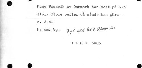 //// Kung Frédrik av Danmark han satt på sin //// * //// stol. Store buller då månde han göra - //// s. 3-4. //// Hajom, Vg. //// I F G H 5805 ////