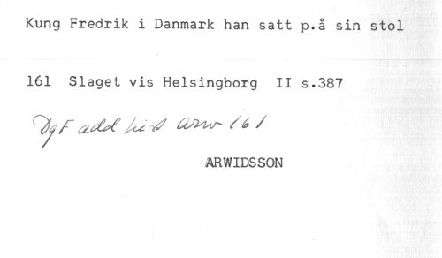 //// Kung Fredrik i Danmark han satt p.å sin stol //// 161 Slaget vis Helsingborg II s.387 //// ARWIDSSON ////