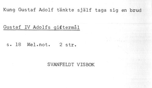 //// Kung Gustaf Adolf tänkte själf taga sig en brud //// Gustaf IV Adolfs giftermål //// - * " *.. , //// s. 18 Mel.not. 2 str. //// * //// SVANFELDT VISBOK ////