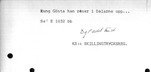 //// ' ' * //// Kung Gösta han réser i Dalarne opp... //// . //// Se= E 1832 bb //// KB:s SKILLINGTRYCKSREG. ////