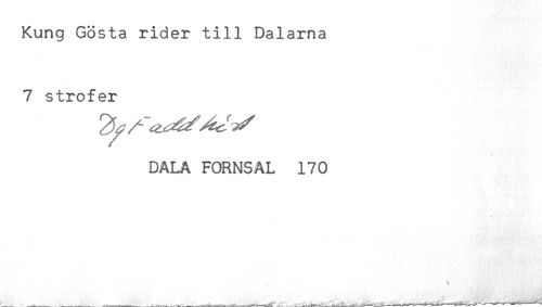 //// Kung Gösta rider till Dalarna //// 7 strofer //// DALA FORNSAL 170 ////