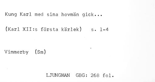 //// Kung Karl med sina hovmän gick... //// (Karl XII:s första kärlek) s. 1-4 //// * //// Vimmerby (Sm) //// \ //// LJUNGMAN GBG: 268 fol. ////