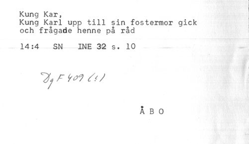 //// Kung Kar, //// Kung Karl upp till sin fostermor gick //// och frågade henne på råd //// 14:4 SN INE 32 s. 10 //// v 4 ////