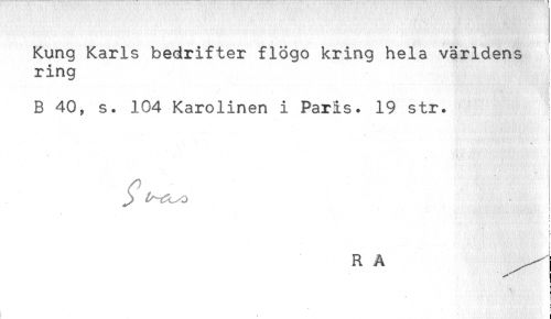 //// Kung Karls bedrifter flögo kring hela världens //// ring //// B 40, s. 104 Karolinen i Paris. 19 str. ) //// * < //// i //// < //// t //// f //// [ //// t //// ! //// R A //// *- //// i* //// < !* ////