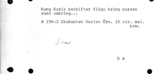 //// Kung Karls bedrifter flögo kring norden //// runt omkring... //// Å 156:2 Drabanten Gustav Örn. 15 str. mel. //// kom. //// J) //// R A ////