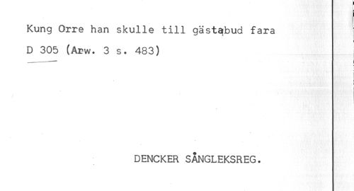 //// * //// Kung Orre han skulle till gästabud fara //// < //// D 305 (Arw. 3 s. 483) //// L //// ——^ //// ! //// j //// DENCKER SÅNGLEKSREG. ////
