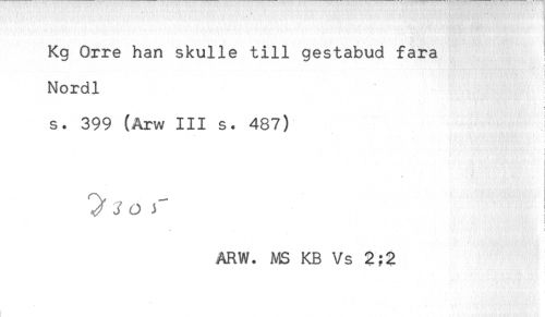 //// Kg Orre han skulle till gestabud fara //// Nordl //// ! //// s. 399 (Arw III s. 487) //// ! //// * //// ^ j o r //// i //// ARW. MS KB Vs 2;3 ////