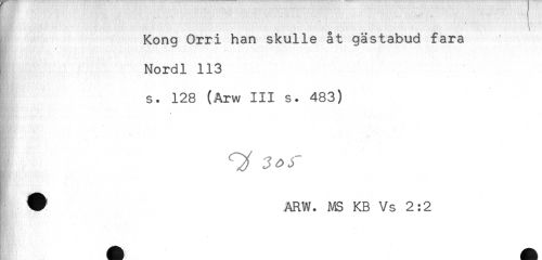 //// Kong Orri han skulle åt gästabud fara //// K //// i Nordl 113 //// s. 128 (Arw III s. 483) //// [ ^ //// W ARW. MS KB Vs 2:2 ////