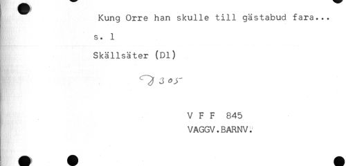 //// Kung Orre han skulle till gästabud fara... //// Skällsäter (Dl) //// I ^ J //// V F F 845 //// VAGGV.BARNV. ////