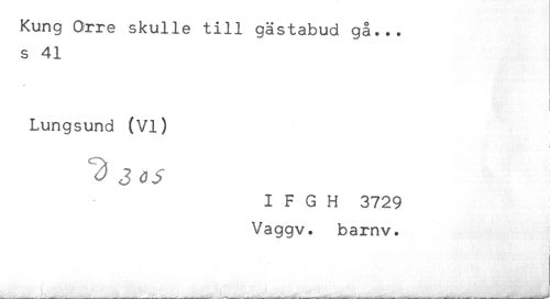 //// Kung Orre skulle till gästabud gå... //// s 41 //// * //// t //// Lungsund (Vi) //// : //// I F G H 3729 //// Vaggv. barnv. //// = //// ! //// : //// ___^ ___J ////