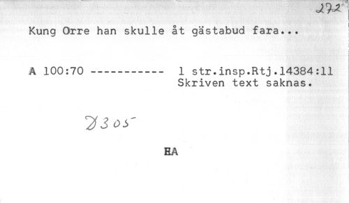 //// Kung Orre han skulle åt gästabud fara... //// t //// i //// < //// I //// A 100:70 ------ 1 str.insp.Rtj.14384:11 //// Skriven text saknas. //// EA ////