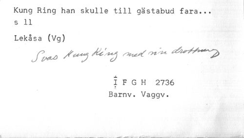 //// Kung Ring han skulle till gästabud fara... //// s 11 //// Lekåsa (Vg) //// I F G H 2736 //// *n - ^ . . //// Barnv. Vaggv. //// * ////