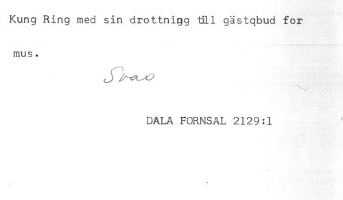 //// Kung Ring med sin drottnigg tUl gästqbud for //// mus. //// J //// DALA FORNSAL 2129:1 ////