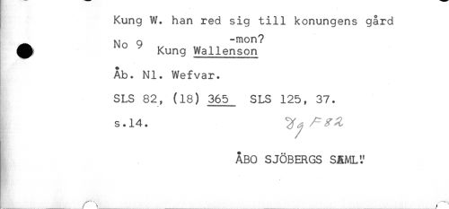 //// Kung W. han red sig till konungens gård //// ^ No 9 -mon? //// ^ ° ^ Kung Wallenson //// Åb. NI. Wefvar. //// SLS 82, (18) 365 SLS 125, 37. //// s.14. //// ÅBO SJÖBERGS SEMU' //// . ////